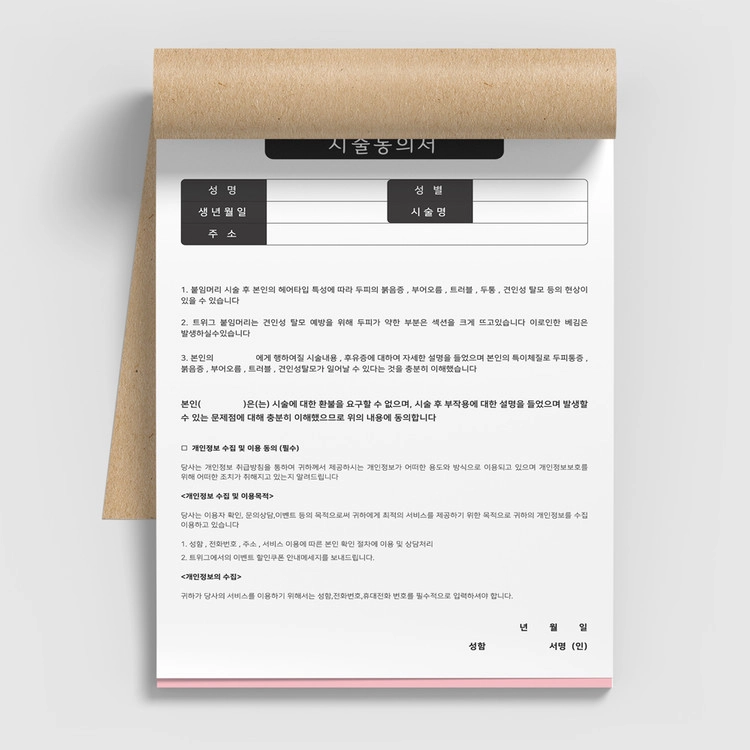 작업사례 - 미용실 헤어 붙임머리 시술동의서 NCR지 디자인